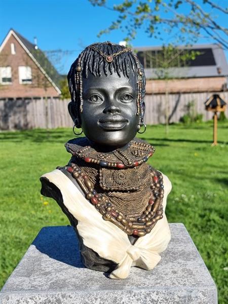 Beeld, African Lady Buste - 33.5 cm - Hars