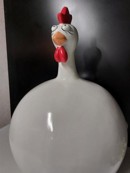 funny big white balloon chicken een eigenaardig en grappig beeld van kip (ballonkip) mooi van kleur en heeft iets speciaals is in goede staat enkel door productie enkele minpunten (krasje) gemaakt uit polyresin zowel voor binnen als buiten te gebruiken onderaan opening van productie hoogte 60 cm diameter 38 cm word met zorg verzonden