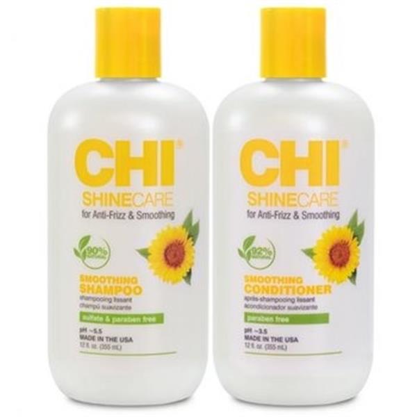 De CHI ShineCare Smoothing Shampoo bevat een milde formule met natuurlijke ingrediënten; aloë vera en zonnebloemolie. Aloë vera staat bekend als een natuurlijk vochtregulerend ingrediënt en bevat enorm veel essentiële voedingsstoffen, aminozuren en vitamines. Het beschermt en hydrateert het haar. Zonnebloemolie is rijk aan vitamine E en oliezuur. Het helpt gebroken haarpunten te voorkomen en hydrateert de droge hoofdhuid. Het gaat pluis en kroezen tegen en zorgt voor zacht en handelbaar haar met een prachtige glans. Het haar wordt van binnenuit beschermt tegen vochtigheid, het conditioneert gespleten haarpunten en hydrateert het haar. Futloos haar is verleden tijd! De CHI Smoothing Shampoo bevordert de elasticiteit, geeft een natuurlijke glans en hydrateert het haar, het resultaat is een ultra gladde look!