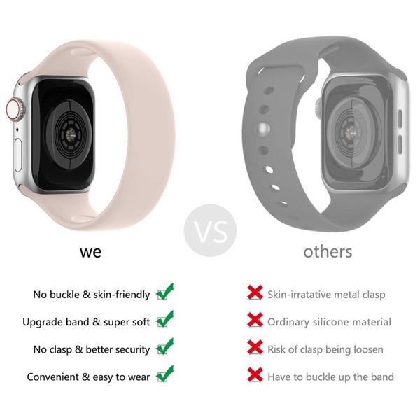 Dit bandje is speciaal ontworpen voor Apple watches met een breedte van 38mm en 40mm. Het bandje is gemaakt van rubber. Deze stof is erg licht en voelt fijn aan op de huid. Het bandje is hierdoor perfect geschikt voor elke Apple watch gebruiker. Er wordt geen gebruik gemaakt van een sluiting. Omdat het bandje van rubber is heeft het geen sluiting nodig door de rekbaarheid van het bandje. Dit is veel makkelijker in gebruik en bespaard veel tijd.