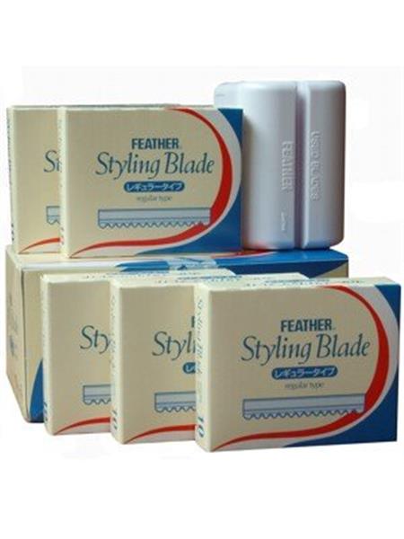 Feather styling mesjes, zijn verkrijgbaar als losse pakjes van 10 stuks, maar ook zijn Feather mesjes verkrijgbaar in een verpakking met 5 pakjes van 10 stuks. Bij afname van 5 losse pakjes, in zo'n overdoos is een gratis container mee verpakt waar u de gebruikte mesjes veilig kunt verpakken.