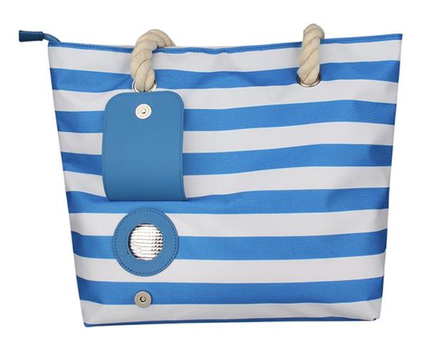 - Gestreepte strandtas met geïsoleerd wijncompartiment en zijvakken