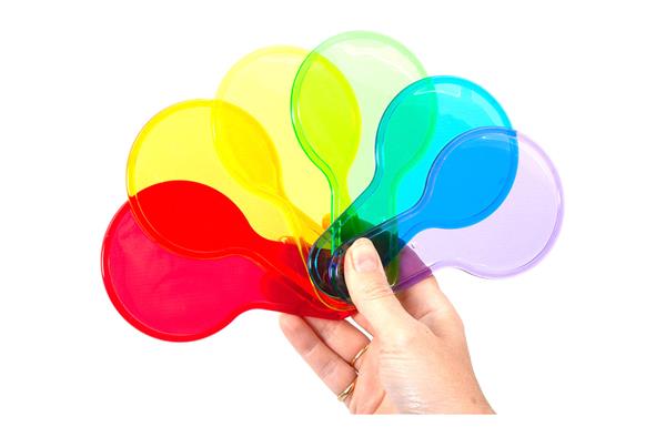 Doorzichtige plastic padels in 6 kleuren. Heel handig voor het mengen van kleuren. Het grotere formaat maakt ze ideaal voor de individuele verkenning.
