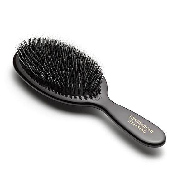 De perfecte haarborstel om het haar te ontwarren, glad te strijken en de hoofdhuid zachtjes te masseren. Door je haar dagelijks te borstelen met een haarborstel met natuurlijke haren, wordt je haar sterker, soepeler en glanzender, omdat de borstel helpt de natuurlijke, voedende oliën van de hoofdhuid over de haarschachten te verdelen. De borstel van natuurlijke haren is ook erg zacht voor het haar in vergelijking met een kam of een borstel met plastic spikes.
