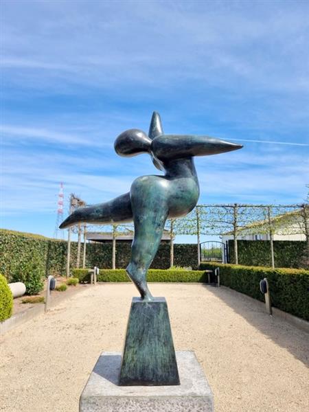 Een prachtig abstract bronzen beeld van een dame op voet. Zeer mooi, dansende vrouw. Een groot model. Zeer mooi stuk voor in uw interieur of voor buiten. Hoogte: 70 cm / 28 inches Breedte: 45 cm / 18 inches Al onze producten worden goed verpakt en met verzekering verstuurd.