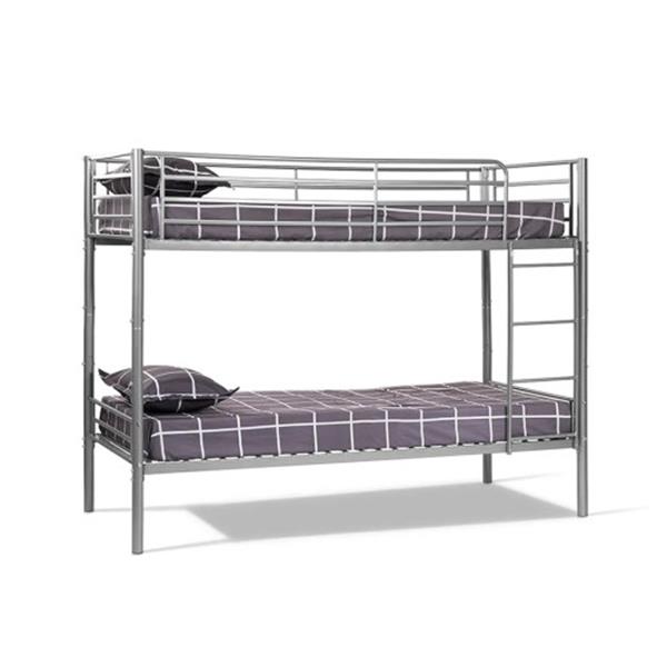 Dit robuuste en stoere metalen stapelbed voldoet aan de norm EN-747 en is ontworpen als een deelbaar stapelbed. Het biedt de mogelijkheid om eenvoudig van 1 stapelbed 2 aparte eenpersoonsbedden te maken. Een handige en flexibele oplossing!Kenmerken:Kleur: zilverMateriaal: staalGeschikt voor matrassen van 90 X 200 cmInclusief stalen bodems, exclusief matrassenEN-747 gecertificeerdBuitenmaten (h x b x d): 160 x 212 x 95 cmGebruiksvoorschrift:Voor het bovenste bed adviseren we uit veiligheidsoverwegingen een matras van maximaal 16 cm.Montagevoorschrift:Dit artikel vereist zelfmontage (handleiding bijgevoegd).Onderhoudsvoorschrift:Eenvoudig af te nemen met een microvezeldoek.Dit prachtige stapelbed wordt geleverd met stevige stalen bodems, zonder matrassen.